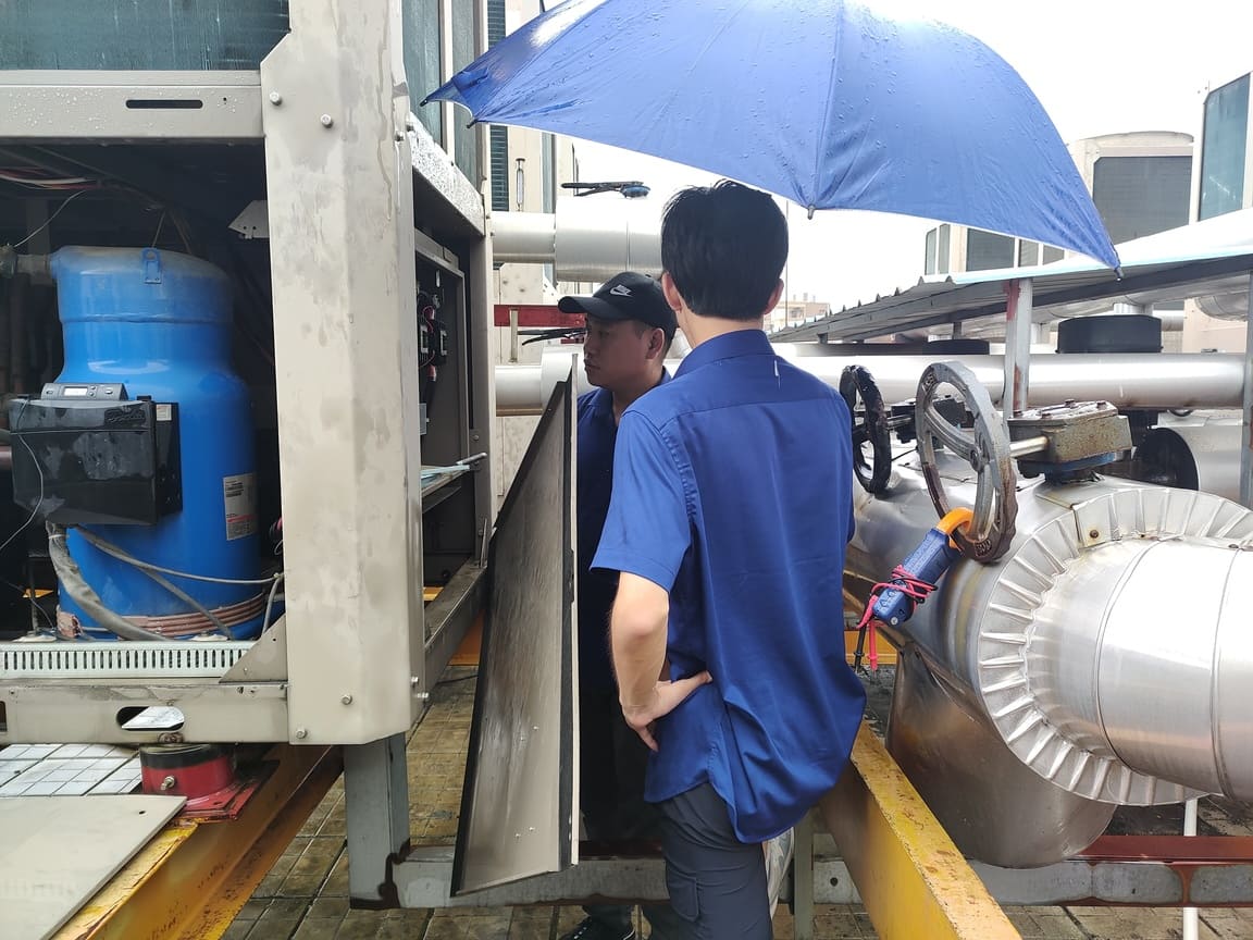 但是,這次德力智控團(tuán)隊(duì)僅僅選取了中山市亞朵酒店樓頂?shù)钠渲幸慌_模塊機(jī)測算。