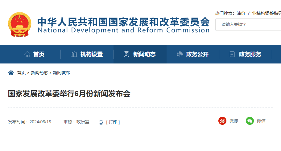 6月18日上午,國家發展改革委舉行6月份新聞發布會。